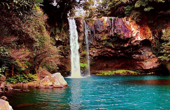 آبشار Cheonjiyeon در جزیره ججو در کره جنوبی قرار دارد. نام Cheonjiyeon به معنی آسمان (Ch’eon) در ارتباط با زمین (جی) است. این آبشار که یکی از جاذبههای توریستی مهم در Jeju-do به شمار میرود، 22 متر ارتفاع و 12 متر عرض دارد. هر چند آب، همیشه در منطقه خاصی میریزد، ولی بسته به مقدار باران، ممکن است پهنای آب آبشار گسترش یابد. در پایین آبشار، برکهای مصنوعی با 20 متر عمق قرار دارد. دو سد کوچک به حفظ ارتفاع آب در سطحی خاص کمک میکنند.در اینجا میتوانید از سنگهای آتشفشانی بزرگ در مقابل آبشار عکس بگیرید. سرچشمه آبشار Cheonjiyeon، چشمهای است که از کف مسیل Somban بیرون میآید. این آبشار یکی از سه آبشار معروف ججو است؛ دو آبشار دیگر، Cheonjeyeon و Jeongbang هستند.